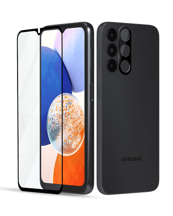 Skydda både skärmen och kameran på din Samsung Galaxy A14 med Rivanoo® premium skyddspaket.
